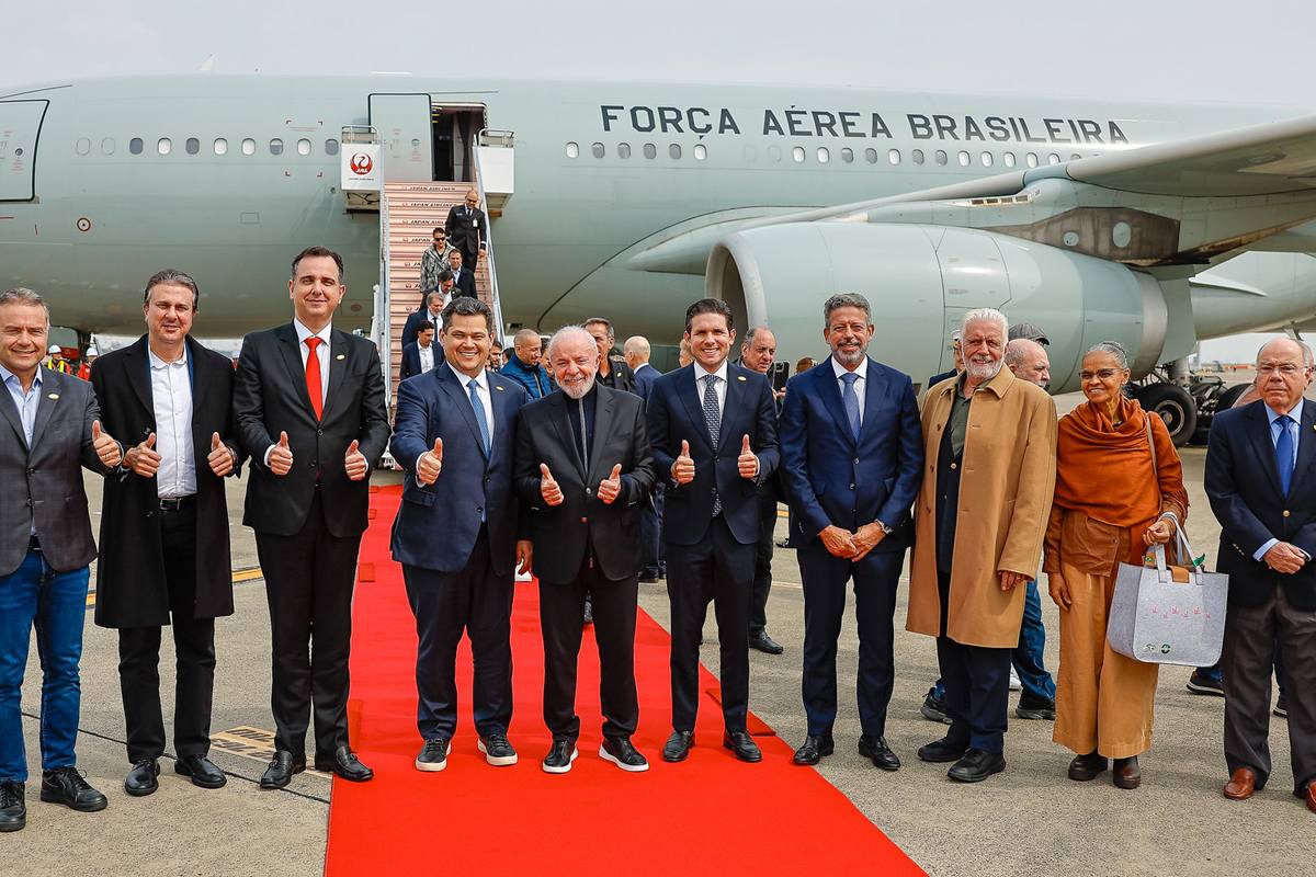Também fazem parte da comitiva os presidentes da Câmara dos Deputados, Hugo Motta (Republicanos-PB), e do Senado Federal, Davi Alcolumbre. Além dos ex-presidentes do Legislativo, o deputado Arthur Lira (PP-AL) e o senador Rodrigo Pacheco (PSD-MG).