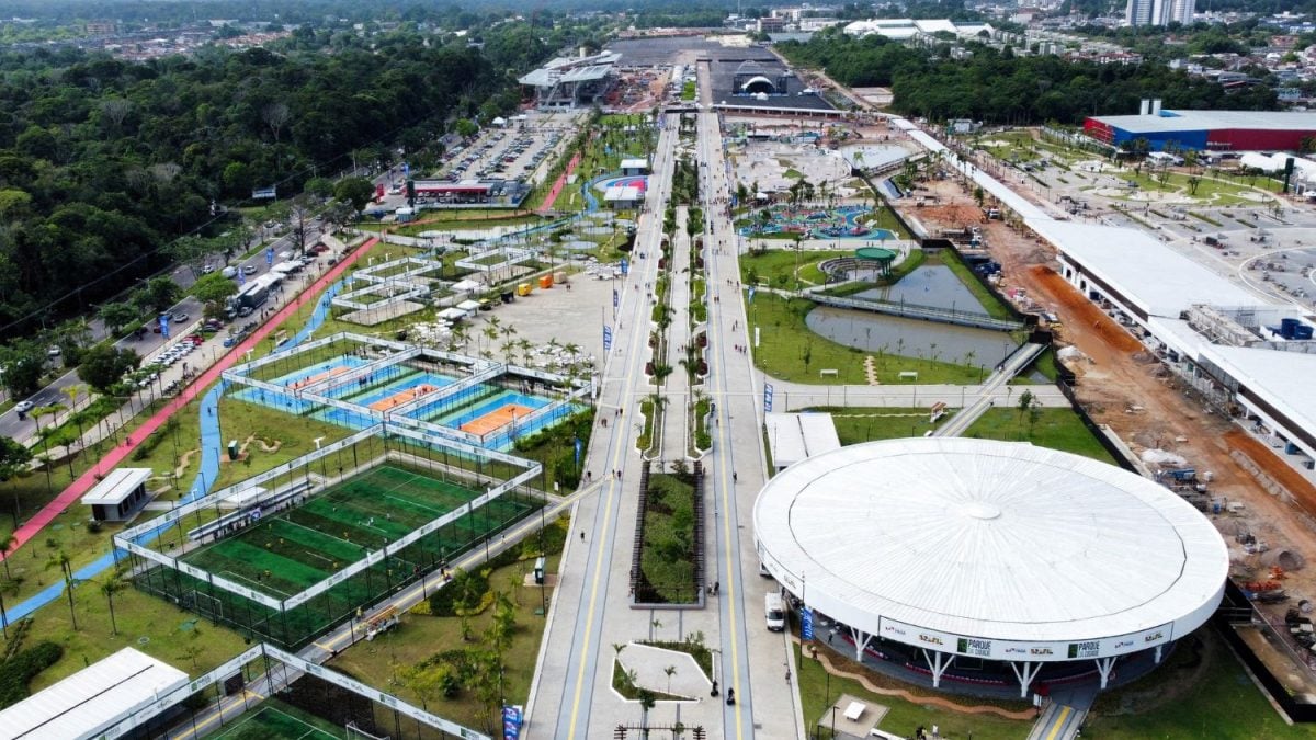 Uma vista de drone mostra o “Parque da Cidade”, um dos principais locais que sediarão a COP30 em novembro, em Belém 28/06/2025
