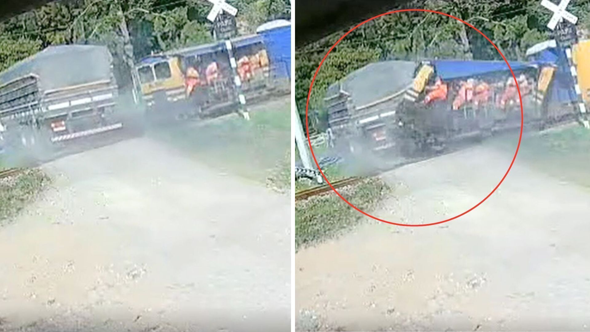 Vídeo: Veículo ferroviário colide contra caminhão carregado de arroz em SC