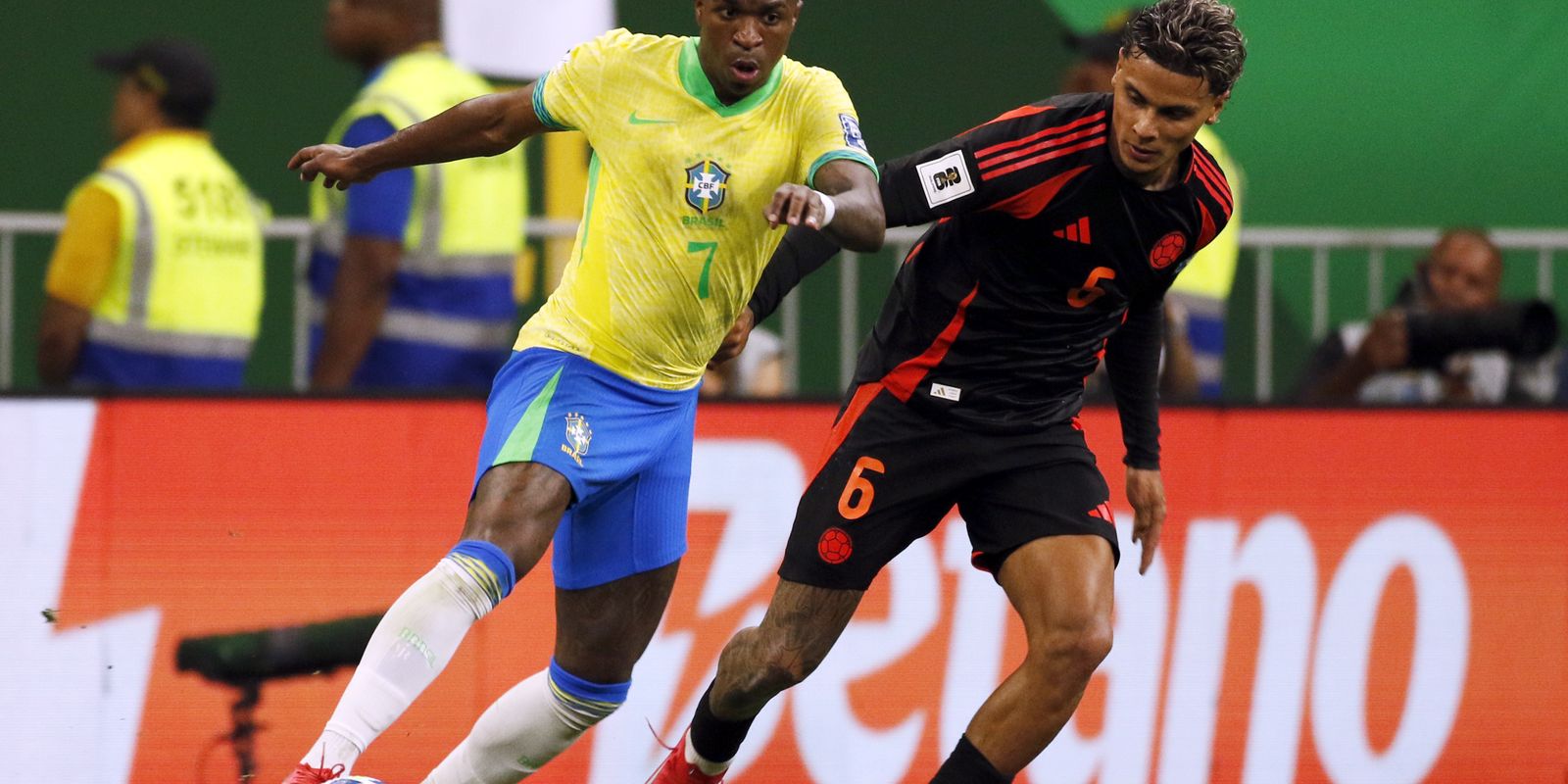 Mais de 70 mil pessoas viram o atacante Vinicius Júnior marcar um belo gol nos acréscimos para levar o Brasil à vitória de 2 a 1 sobre a Colômbia, nesta quinta-feira (20) no estádio Mané Garrincha, em Brasília, em partida válida pela 13ª rodada das Eliminatórias Sul-Americanas para a Copa do Mundo de 2026. A Rádio Nacional transmitiu o confronto ao vivo.